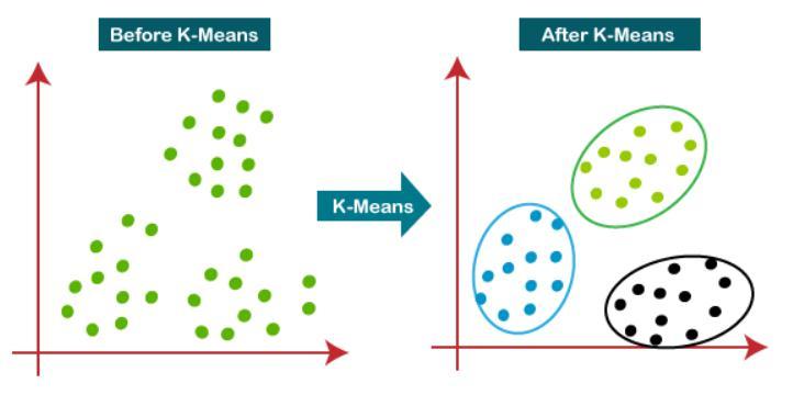 K Means Clustering is an unsupervised learning algorithm that is used to solve the clustering problems in machine learningordatascience.Itgroupstheunlabeleddatasetinto differentclusters.tallowsustoclusterthedataintodifferent groupsanda convenientwaytodiscoverthecategories of groupsintheunlabeleddatasetonitsownwithouttheneed foranytraining.Itisacentroid basedalgorithm,whereeach cluster is associated with a centroid. The main aim of this algorithmistominimizethesumofdistancesbetweenthe datapointandtheircorrespondingclusters.Thealgorithm takestheunlabeleddatasetasinput,dividesthedatasetinto k numberofclusters,andrepeatstheprocessuntilitdoesnot findthebestclusters.Thevalueofkshouldbepredetermined inthealgorithm.