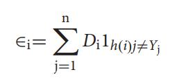 Theerrorfunctionϵiisequaltothesumoftheweightsofthe samples,whoselabelpredictedbytheweakclassifierh(i)jis differentfromtheknownlabelYji.e;ϵiisequaltothesumof theweightsofallthesamplesthatwerepredictedwrongand the prediction matrix P contains the strength between diseaseiandmicrobej.