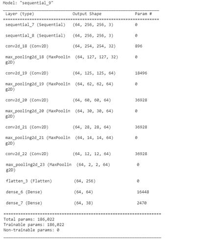 Itisusedtovieweveryparameterandformineverylayerof our models. It is observed that the total number of parameters is 186,002 and the total number of trainable parametersis186,002.Thenon trainableparameteriszero. Fig .5. Model Summary