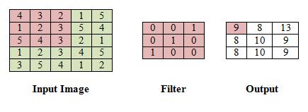 ConvolutionallayersarethecorepartofCNNwherelotof computation occurs. A filter moves across the receptive fieldsoftheimagecheckingwhetherthefeatureispresent. Nextthefiltershiftsbyastride,repeatingtheprocessuntil thefilterhasslidacrosstheentireimage.Thefinaloutputis the feature map which is the dot product of input image pixels and the filter. Fig.2. illustrates the convolution operation of input image size 5*5 and filter size 3*3 and stride1.