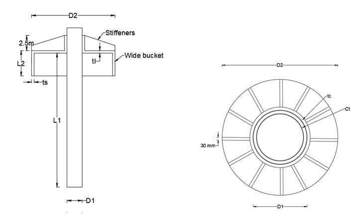 Widebucketdiameter(D2) 11mto13m Concretethickness(Ct). 0.11mto1m