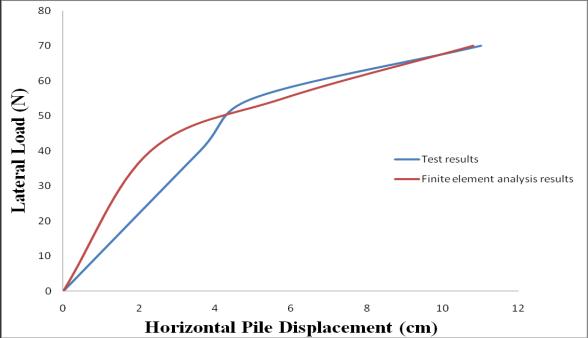 In this section numerical modeling ( Finite element method) is validated with real experiment. And the computedresultsobtainedfromFEAiscomparedwiththe experimental result. In this validation, the diameter of monopile (D1) is taken as 8cm m and corresponding embedmentlength(L)istakenas25cm.Thelength,breadth and depth of soil domain are 25 cm x 25 cm x 25cm respectively. The loose soil is used for this study. The monopileisplacedatthecenterofsoildomain.Theactuator isusedtoprovidethehorizontalloadtothesystemandthe correspondinghorizontalloadismeasuredbytheloadcell. Fig7showsdifferentstagesoftheexperiment