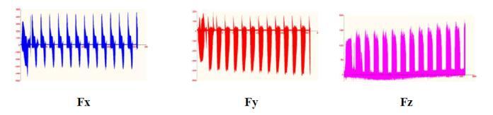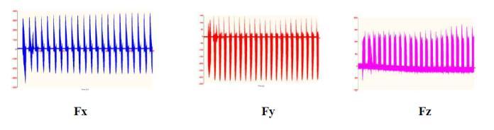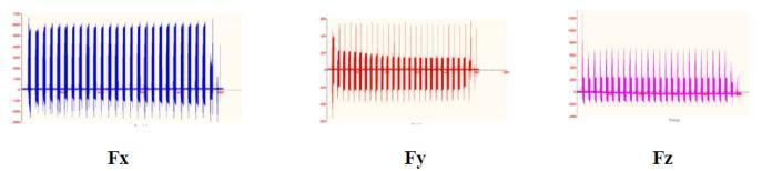 WhereFx,Fy,Fzdenotetangential,radial,andaxialcutting forces (N) which are obtained from the Dyno ware setup. The cutting forces obtained for raster toolpath (3rd experiment)wereshowninfig8