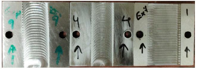 Toavoidrustingonthemachinesurfaceoilisappliedonthe workpiece after completion of all experiments. Figure 5 showsthemachinedworkpieces.Thefirstworkpieceshows the Hybrid toolpath used in 9th experiment. The second workpiece shows the Trochoidal toolpath from the 4th experiment.ThethirdworkpieceshowstheRaster/One way toolpathfrom the1stexperiments.The experimentswere performed on both the sides of the AISI D3 material to reduceamountofmaterialusedandcost.