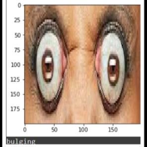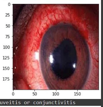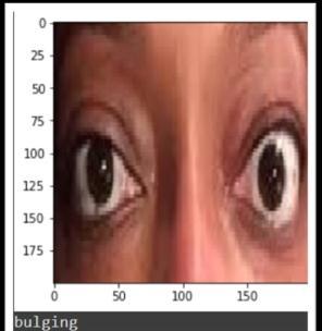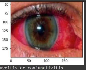 For this model we are comparing different classes of diseaseslikecrossedeyes,bulgingeyes,uveitis/conjunctivitis andcataract.Thetrainingisdoneforsingle eyeandtwo eye images using two separate models. One model predicts diseasesnamelycrossedeyeandbulgingeyeusingtwo eye images as in fig 5 and fig 6. The other model predicts diseaseslikecataractandconjunctivitis/uveitisusingsingle eyeimagesasinfig 7andfig 8
