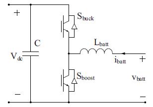 1) Buck mode operation: It is a charging mode, where power flows from grid to vehicle. In this mode when upper switch is operating ;Iehaving low valueconverteract asa buck converter andsyeps down the ‘input voltage(Vdc) to battery charging voltage( Vbatt). When switch is off, through inductor and diode of lower switchcurrentcompletesitsreturnpath.