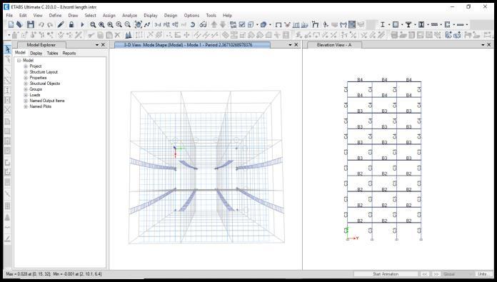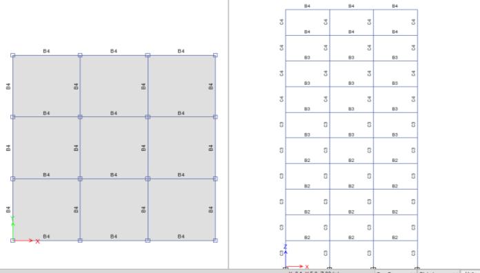 Analyses are performed for the 10 story three dimensional steel frame structures using Imperial valley ground motions analyzed using the ETAB software . The structurehavethreespansinthehorizontaldirections,the spanlength is5m,andthestoryheightofthestructureis 3.2m Arrangementsofthebeamsandcolumnsareshown in Table 1and Table2 Slab thickness is 130 mm. The concrete mix defined for the column, beam/slab is taken as M30 and M40 respectively. Fe 500 and Fe 415 grade rebarisuse1 §dasalongitudinalandconfinementbar