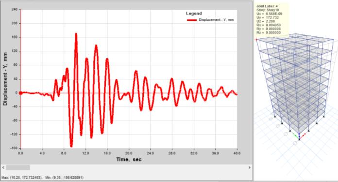 Fig 5:Timehistoryanalysisresultsforthedisplacement oftopstoreyY direction