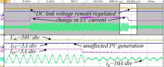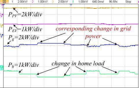 PPV=2kW/div Ph=1kW/div Change in home load EV support the home load ih=5A/div IEV=5A/div