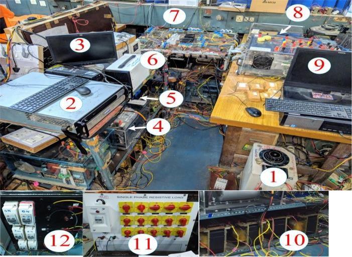 The EV charger designed for single phase 230V, 50Hz grid is shown in Fig. 5. The open circuit voltage and short circuit current of the solar PV array is 460V and 10A, respectively. However, the maximum power point voltage andcurrentare396Vand9.5A,respectively.Thelead acid battery of 240V, 35Ah is used as an EV battery in the experimental prototype. The implementation of the chargeriscarriedoutusingthedigitalcontroller(dSPACE 1006). For the implementation of the control algorithm, the digital controller requires various (voltage and current) signals of the charger. Therefore, various voltage and current signals (analog) are acquired using the Hall Effect based voltage (LEM LV 25P) and current (LEM LA 55P) sensor. These signals are converted into digital signals using an analog to digital converter (ADC). The digital controller uses the digital signal to implement the control algorithmand togenerate theswitchingpulses for VSCanddc dcconverter.
