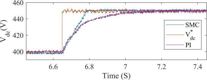 Fig. 12 shows the dc link voltage (Vdc) regulation capability of the PI controller and SMC under the step changeof50Vinreferencedc linkvoltage(V* ).FromFig. 12,itis observedthat the SMC is faster in regulating the dc linkvoltageascomparedthePIcontrol.