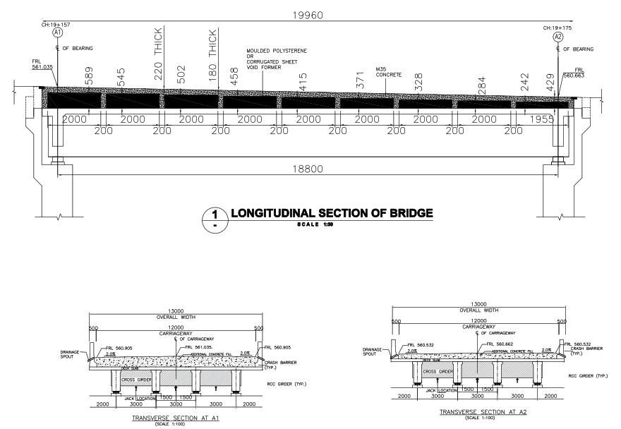 The corresponding highway is upgraded, hence FRL is increased up to 801 mm on A1 side of bridge and 430 mm on A2 sideofbridge.Seeingthecurrentconditionofbridgeiswasdecidedtoretainthebridgeandmatchthenewroad FRLby placingthefillondeckslab.LayingofRCCoverdeckslabtomatchtheFRLwasnotsafeastheULSmomentexceededthe Capacityofthebridgegirders.Hereweareusingpolystyrenefoamboxesasameantocastvoidsslab.Thedensityofboxis 25kg/m3 anddirectlyobtainedfromlocalmanufacturer.