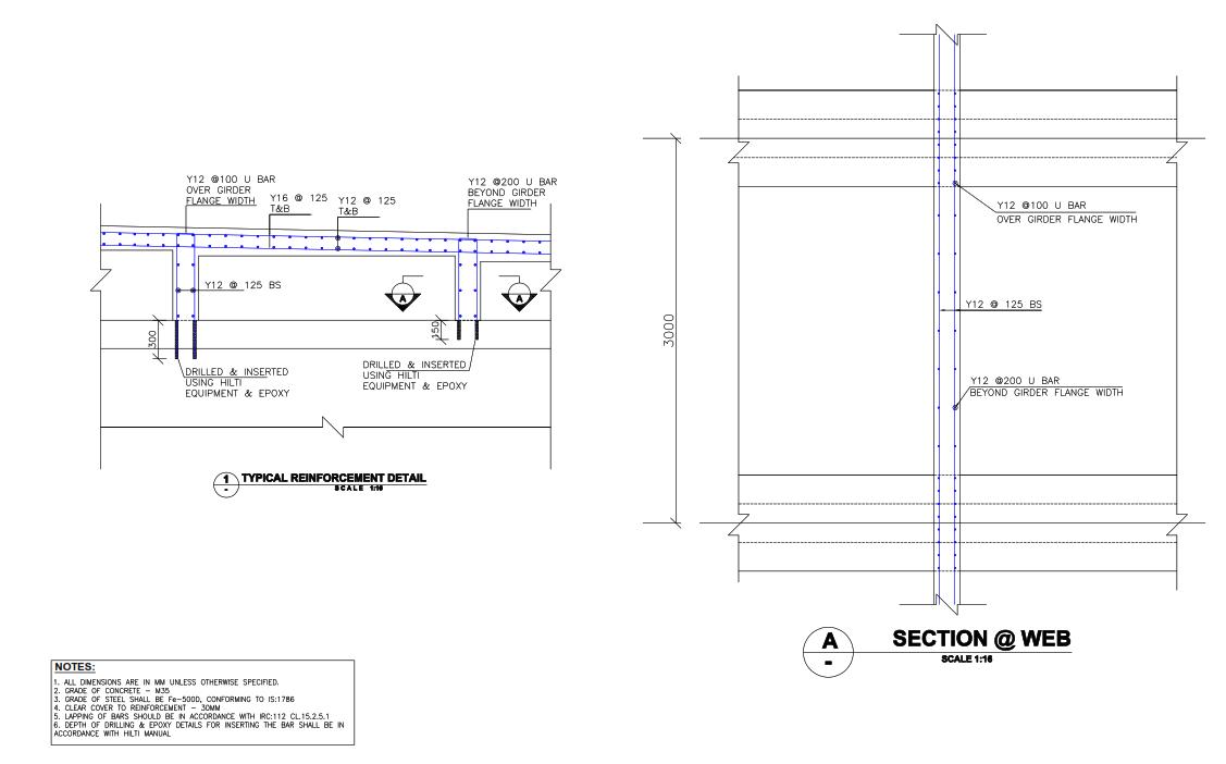 Thetwomaintechniquesforbuildingvoidslabsystemsarethefiligreeapproach,inwhichsomecomponentsareprecast at a workshop or concrete yard, and the on site method, in which the entire system is cast. Both methods use the basic three components. In both methods, Polystyrene box void is main component. These voids are often Tubular, spherical, hollow and rectangular which is made of polystyrene. The presence of voids makes the slab lighter than conventional concrete slabs. The steel cage is an additional component. The slab is reinforced with steel to prevent flexure, and the voids are held in place in the middle of the slab by a cage made of thin steel. Concrete, the third element, surrounds the voids and ultimately decides the strength of the slab Concrete, the third element, surrounds the voids and ultimately decidesthestrengthoftheslab.Thelastcomponentistheverticalreinforcementofwebwhichisdrilled&insertedusing HILTIEquipmentandepoxyinthedeckslab.Theinitialdepthofverticalbaris300mmnearA1sideofbridgeandthe150 mmsubsequentlyasshownin Figure 1