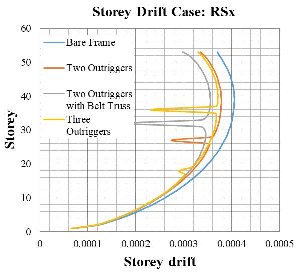 Chart 3 StoreydriftvariationusingResponseSpectrum method(RS)alongXandYdirections