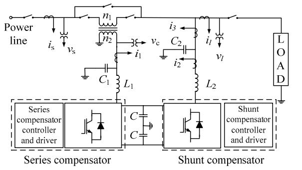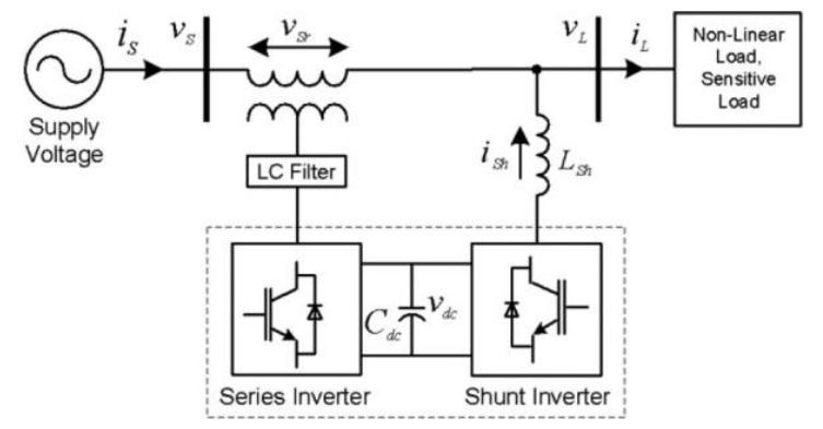 Series and shunt power converters, DC capacitors, low pass and high pass passive filters, and series and shunt transformersaretheprimaryelementsofaUPQC.