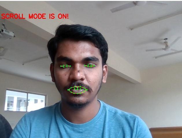 Scrollmodeisactivatedbymockoperation.Scrollingcanbe donebymovingtheheadupwardscalledthrowingand,on thesides,calledyawning.Scrollmodeisstoppedbyjoking again.Clickingactionoccurswiththeblinkofaneye.Right blink is accompanied by right blink and left blink is accompaniedbyleftblink.