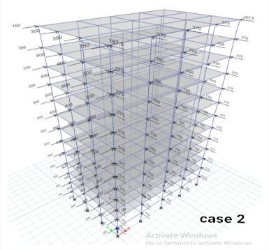 thecornersofthestructure,X steelbracings,ISWB500are considered. The model is then analyzed and response in termsofstoreydisplacementandstoreydriftisobserved. Fig 7: Model1 Fig 8: Model2 Fig 9: Model3 Fig 10: Model4