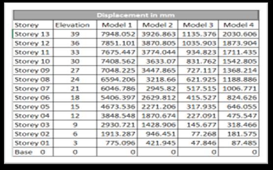 Fig 12: Displacementcomparisonforfourmodels