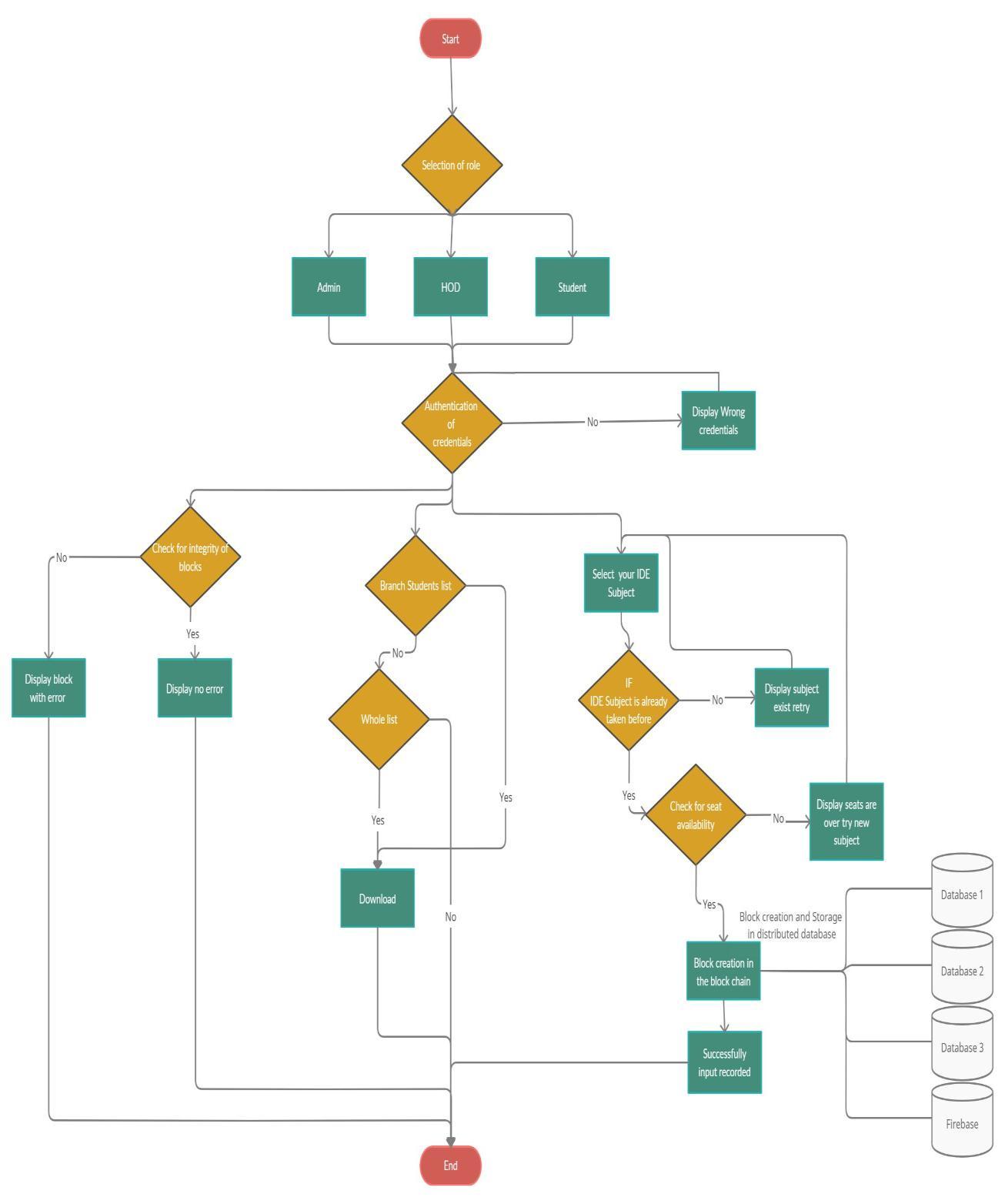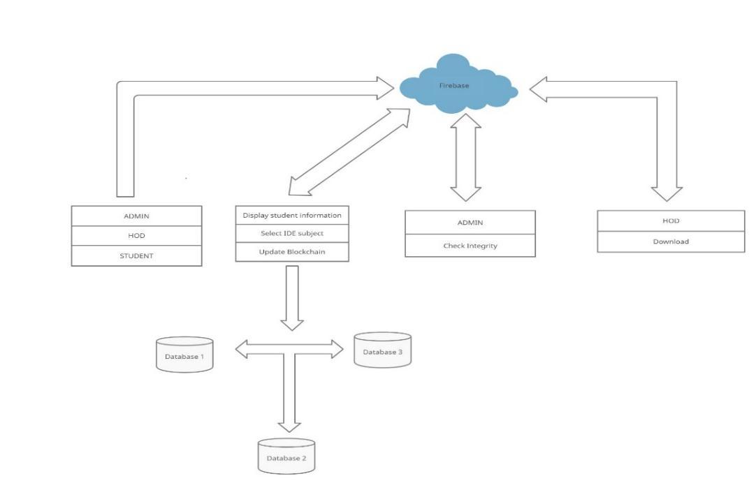 Blockchain [1] is a constantly growing set of data with certain records in it called blocks, it is a particularly encouraging and progressive innovation since it lessens risk, gets rid of extortion and acquires straight forwardness.Theyaresecuredandlinkedtogetherusing cryptographic methods. Here we developed a program that simulates a real time block chain technology blockchain for choice of IDE (INTER DEPARTMENT ELECTIVE), which ensure that the chosen IDE (INTER DEPARTMENT ELECTIVE) can't be changed by any outside source and it is likewise straightforward to people in general. A block of data it consists of data of students such as the name, the college seat number and the subject selected .The Blocks containing these data arethen encrypted [1] ,it’s a way when normal readable textisconvertedintounreadabletextsothatitcannotbe accessed and changed, the encryption works in such a waythatifanywordorspacingorcapsischangedinthe original text the encryption text gets changed .The encryptiontextisirreversiblesotheoriginaltextcannot beretrieved.Theentireprojectisboundbyusingpython andflaskframeworkthathelpsustohostthewebsite,to make entries these entries are then passed on to the databases these databases are distributed in nature whichisthecoreconceptof blockchain.Anychangesin any one of the database the data in other databases will