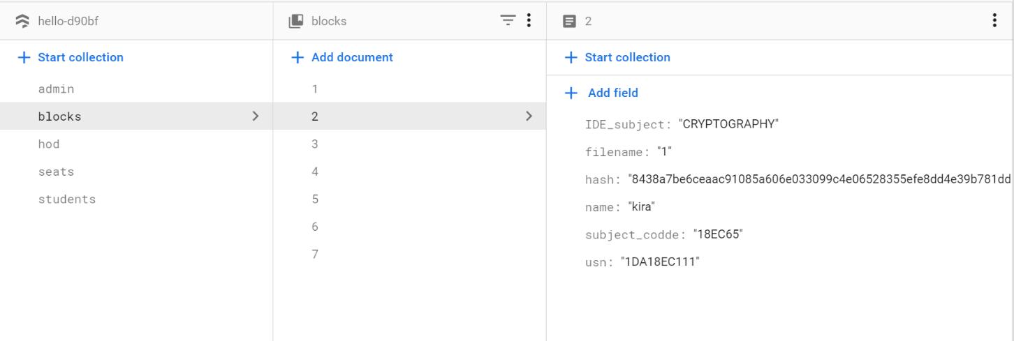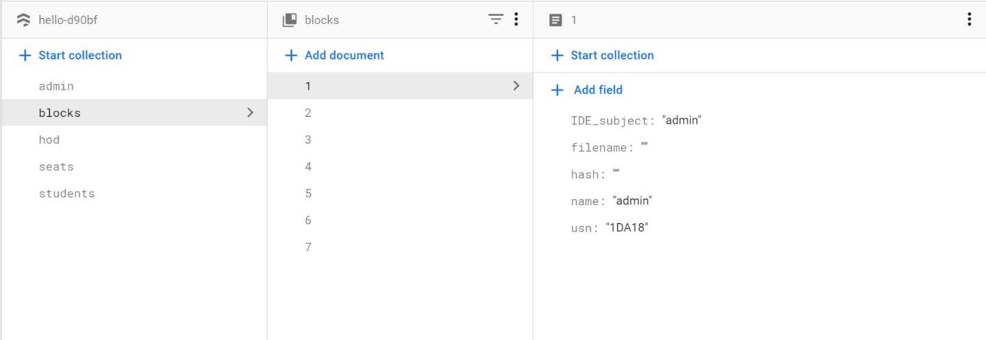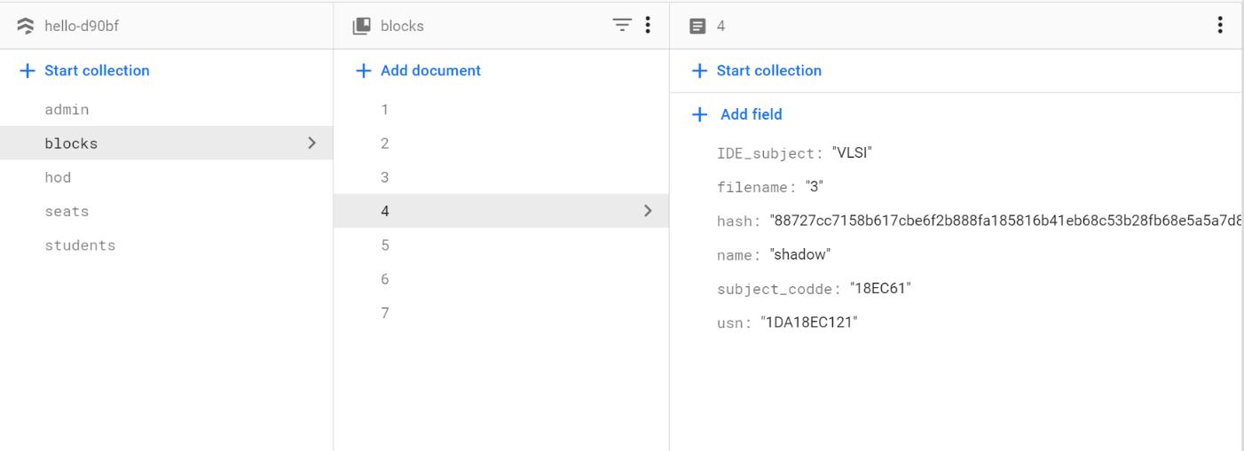 Thestudentloginisonlyforthestudentswheretheywill have to login with their respective email ids and passwordwhichwilltakethemtotheirhomepagewhich displaysthenameofthestudentsemesterofthestudent andtheuniversityseatnumberofthestudentandallthe subjects the student has already studied in the previous semester and the option to select the available subjects. Uponselectingthesubject,anewblockwillbegenerated connectingtothehashofthepreviousblockandrecords the data in the decentralized database which is now permanentandcannotbealtered.