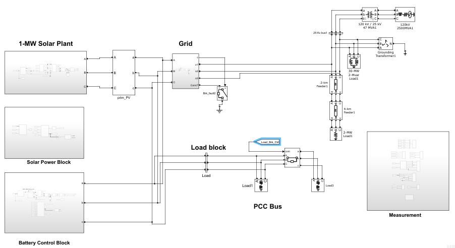 Figure 7 Show the microgrid model of the system with 1mw solar plant , BESS controller and power grid. All the outputcanbeseeninScopeofthesystem.