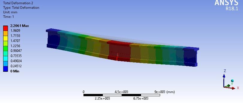 Fig 11: TotaldeformationofsingleT beamgirderwith Cu NiU shapedclips