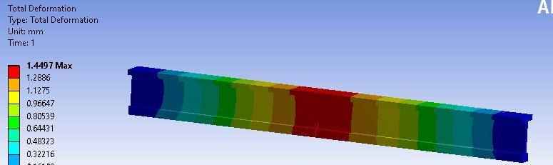 Fig -7:TotaldeformationofsingleT beamgirderwithNi TiU shapedclips
