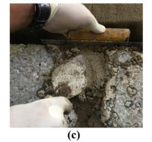 Fig. 12.CCsubstratesurfacebeforeplacingtheAAC,(a)no treatment,(b)concretebondingadhesive,and(c) sandblasting[65]