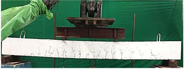 Cement concrete (CC) and alkali activated concrete (AAC) beams with no cold joints were prepared for comparison purposesaswellasthosewithcoldjointsandfull depthCC andAACspecimens.AlayerofCChavingaheightof75mm was placed in each; then, either no surface treatment (Fig.12,13),aconcretebondingadhesiveorsandblastingwas appliedtoeachCCsurface.Thereafter,alayerofAACmixture wasplacedagainsttheCCsurfaceofeachspecimenandthe repairedspeckledspecimenswerecuredasdescribedinthe slantsheartest[65].