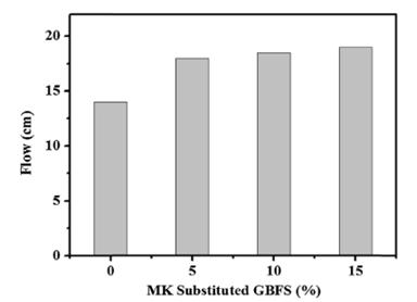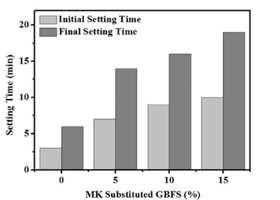 Fig. 1. ImpactofMKsubstitutedGGBFSonflow geopolymermortars, a)Flow, b)Settingtime [27]