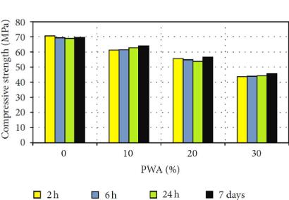 Fig. 4.PWAdependent%compressivestrengthsfor differentmixureswithcurigageof4hinan oven[37]