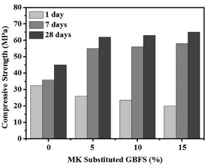Fig .3. ImpactofMKsubstitutedGGBFSontheearly compressivestrengthofGPMs[27]