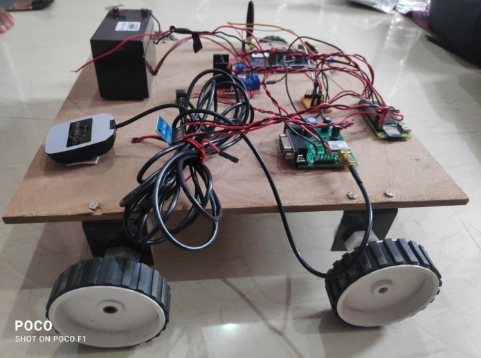 Thisistheinternetofthings(IOT)basedproject,wherewe areparticularlyusestheRaspberryPi,USBwebcameraand twoDCmotorwithRobotchassistobuildthisRoboticcar setup.Ithasawebcameramountedoverit,throughwhich wewillgetlivevideofeedandtheinterestingparthere is thatwecancontrolandmovethisrobotfromawebbrowser over the internet. As it can be controlled using webpage, means it can also be controlled by using the other smart deviceswherewecancontrolthroughthewebpage.Webuilt a webpage in HTML which has Left, Right Forward Backward links clicking on which we can move the robotinanydirection.Hereweusetheterm“Motion”for getting live Video information from USB camera and used “Flask”forsendingcommandsfromwebpagetoRaspberry