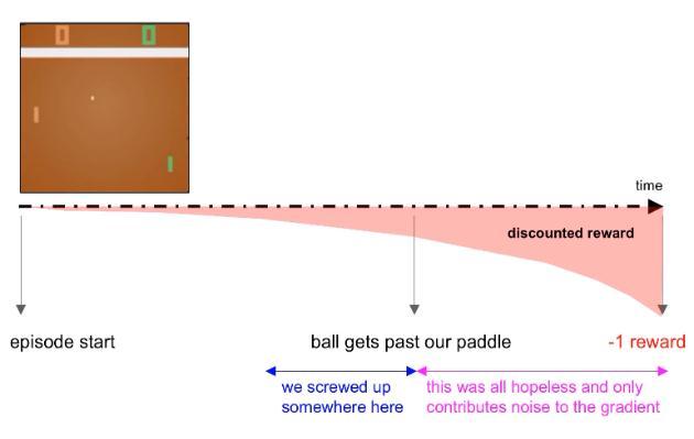 One way we can improve is by using reward discounting tomoreintelligentlyallocaterewardsforactions.Itisbest tosupportthemostrecentactionorframeinthecaseofa positive reward and to discourage it in the case of a negative reward because it is the most pertinent. An exponential factor discounting factor, (gamma), with an initial valueof0.99,assigns lesscreditto anyactivities or timeframesthatoccurbeforetherewardwasearned.