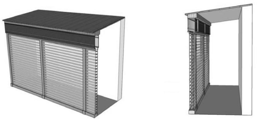 Threeinstances,preciselytheoriginalruraldwelling,rural residencewithonlysunspace,andalsosunspacealongside PCM louvres, were developed to illustrate the impact of sunspace and PCM louvre combinations on the rural residence energy saving. Sketchup and the Openstudio plug inwereusedtocreatea basicmodel ofa rural home with sunspace. The rural dwelling with sunspace features a 1.5 meter deep space adjacent to the residence's south façade.Abig(11.4mwideand2.5mheight)glasswindow faces the south. The PCM louvres are inserted into the sunspace's glass envelope, and a simplified model is created to display the front and side views of the studied structure, as seen in Figure 4 (a) and (b) given above respectively.Thephasetransitionfeaturesaparaffin filled shuttle shapedaluminumalloycasing.Thelouvresare1.9 metres long, 0.1 metres wide, and 0.02 metres thick at their thickest point. The louvres are installed in the interlayer of glass layer, with a 150 mm spacing between them and a 25 mm gap between them and the glass on