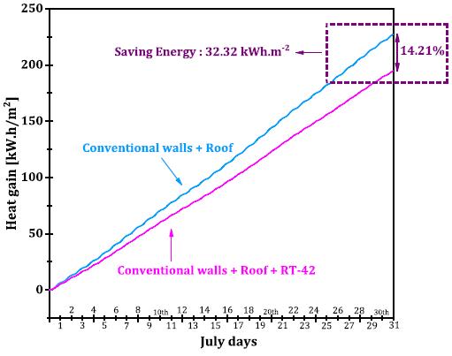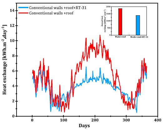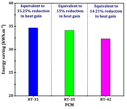The maximum CO2 saving throughout the year was also calculated to be 198.65 kgCO2/m2.year which was recordedfortheRT 31PCMvariant.