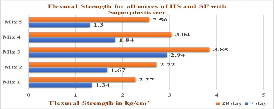 Table 10 Flexural Strength of Hypo Sludge (HS) and Steel Fiber (SF) with Superplasticizer mix Concrete for all Mixes