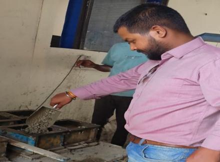 By these test results we can say that compressive strength of Hypo Sludge and Steel Fiber with Superplasticizer concrete can be increased 43.72 kg/cm2 by adding Hypo Sludge 20% of the weight of the cement content and Steel Fiber 2% of the weight of the sand. It is also clear by these results that more than 20% Hypo Sludge and 2% Steel Fiber start reducing the compressive strengthofconcretethereforewecanalsosaythattheMix 3isthebestsuitablemixforcompressivestrength. Figure 2CubeCasting