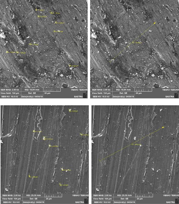 It'svitalthatthemicrostructuralreadingswerepresentedin Table5.Itrepresentsthevaluesofaverageflyspecksizeand grainboundaryconsistenceinmicromeasures.Theobserved readingsfromthemicrographicalstructurehabittoidentify the flyspeck size measured through the Scanning ray microscope Vega 3 TESCAN as shown inFig. 8. The SEM images showed the detailed structural changes of both discerned casting samples. The stressed samples were involved thoroughthe SEMexamination withtheseparate exaggerationfactorposition.forcolorfulimageinterpretation colorfulreadingswerecapturedfromtheperipheralsofthe set instance. Its grain boundary also noticed as µm as recordedfromSEMimages.also,betterflyspecksize1.1693 µmweresetupduringthequenchingofmonoheattreated primarystageofAl6061castedsamples.