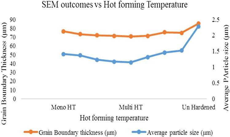 Fig. 8 Relationship of SEM outcomes and hot forming temperature.