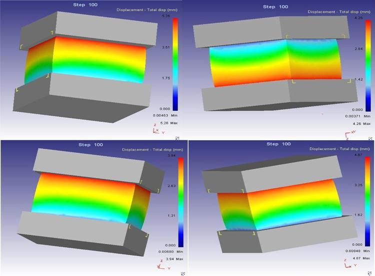 Here the displacements were calculated from its initial thickness of each specimen after hot pressed and it is mentioned in Table 2. The deformation levels were well predictedthroughthedynamicanalysissoftwaretoolDeform 3D. These predicted graphical values of displacements are comparedwiththemeasuredchangeinthicknessvalues.We havetocalculatethedisplacementaschangeinthicknessof the hot presses specimen under various heat treatment processes.