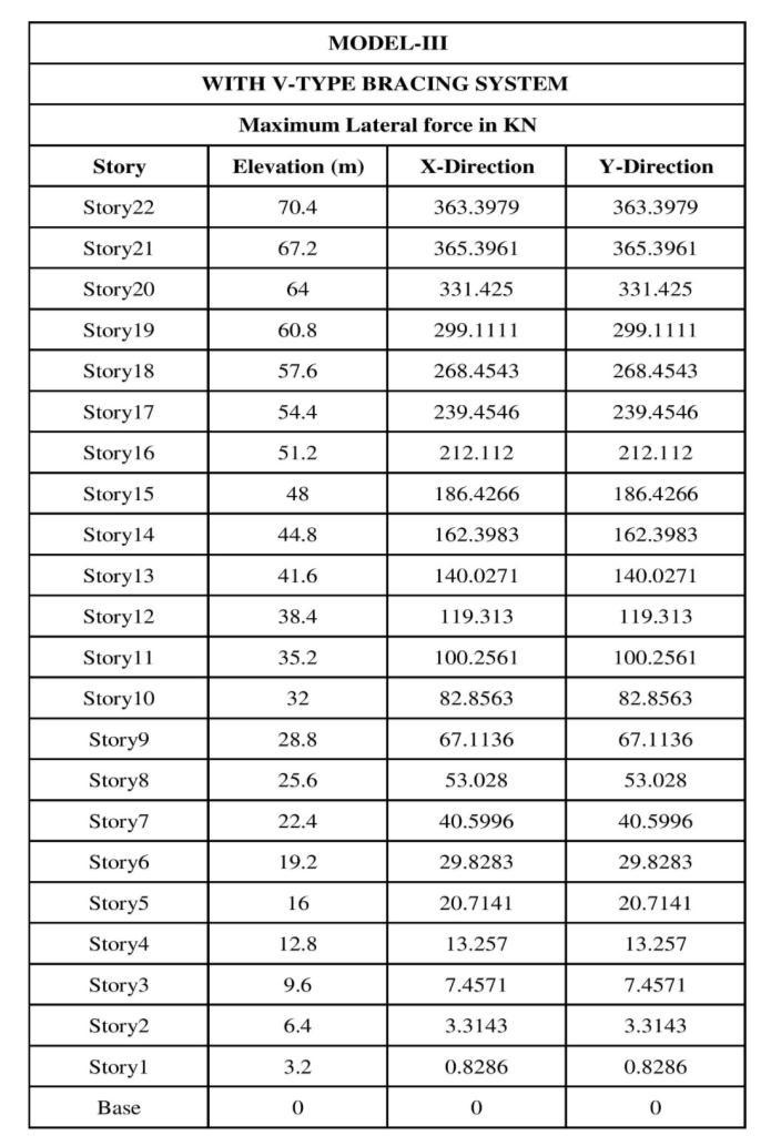 Table: 5.3 Storey Lateral force in MODEL III