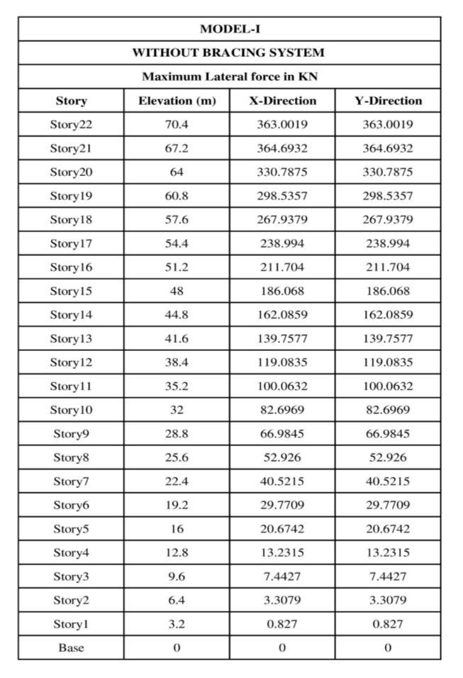 Table: 5.1 Storey Lateral force in MODEL I