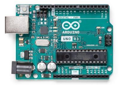TheArduinoUNOR3istheperfectboardtogetfamiliarwith electronics and coding. This versatile microcontroller is equipped with the well known ATmega328P and the ATMega16U2Processor.