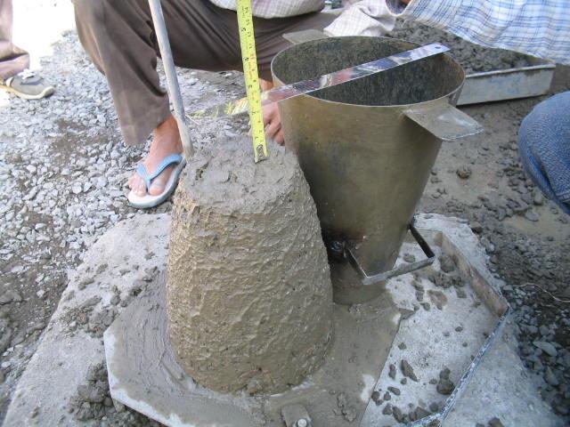 Various observations mix Reology and generalbehaviorforeachmixwasobserved.Freshconcrete mix in general and in slump cone has been carefully examined.Themixwasfoundtobecohesivetextureinall thecases.Togetworkablemixaslightadjustmentinwater cementratiowasmade.Noadmixturewasusedinanymix tobeconsistent.Atypicalshapeofthemixinslumpconeis showninfigure5.Nobleeding,segregationorshearing of slumpconewasobserved.Itwasseenthatconcretebehaves verymuchlikenormalconcretewithtrueslump