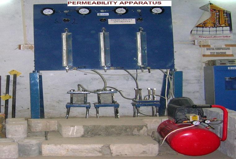 Permeability of concrete is determined using method described in “Specifications for Road & Bridge Works”ofIndianRoadCongress.Forthis3cylinders,having dimensionsof150mmdiameter&160mmheightwerecast and cured for 28 days. They were fixed in permeability apparatusshowninfigure12.Waterpressureof7Kg/cm2 wasappliedfor96hoursinthePermeabilityApparatus.