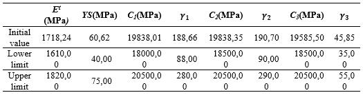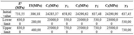 Thefactthatthemodelparametersarefoundbycurvefitting does not mean that the parameters obtained will comply withallkindsofplasticdeformationprocesses.Optimization processesare frequentlyusedforthispurpose.Theinitial materialconstants YS, Et, C1, γ1, C2, γ2, C3, γ3 aredefinedas theinputvaluesoftheoptimizationprocess.AsinEquation (15a), an objective function is determined. For the optimizationprocess,firstdesignpointsaredeterminedand a solution is obtained for the design points obtained in Equation(15b, c).Inordertoseetherelationshipbetween theobtainedresultsandvariables,theKriging[23]method canbeusedtographtheinputvaluesandoutputvaluesand followthechangesbeforeoptimization.