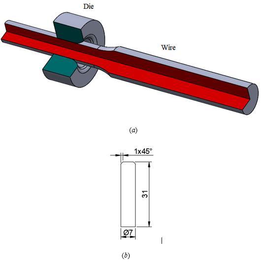 In the current studies in the literature, the finite element methodwasusedtosimulatethewiredrawingprocess,and theeffectsoftensileforceanddiegeometryonthedrawn wireweredetermined[1].Simulationsofthewiredrawing process and optimization of geometric formwork are commonlyperformed.Theeffectsofthetensileforceonthe processparameterssuchasdiewear,lubrication[2],friction coefficients[3]andmaterialthinningweredetermined[4 6]. As a material model, the effects of hardening and non