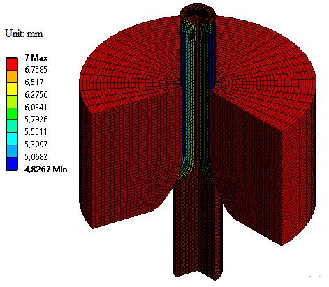 As can be seen from Figure 9b, a displacement between (1.53mm) ( 1.25mm)boundariesisrequiredasinFigure 9c toproduce2.1%deformation.