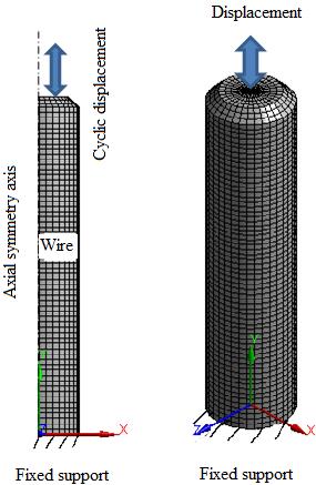 Figure 6. (a) Finite element model for simulation of monotonic plastic deformation, (b) displacement steps appliedtothewire